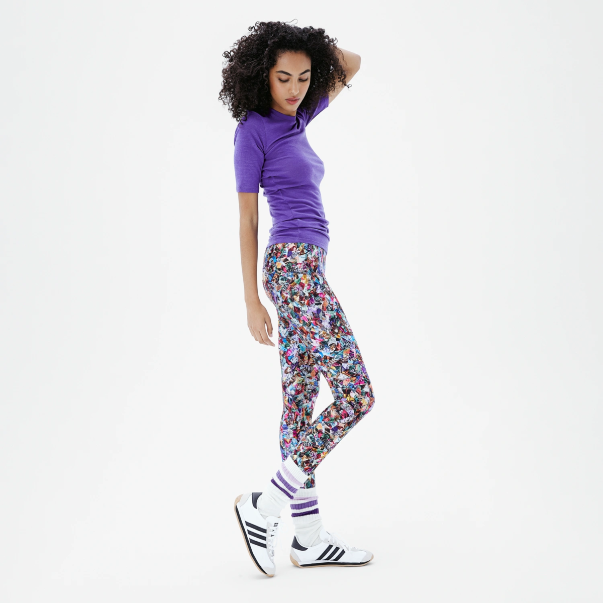 Le legging Confetti capture l’esprit des années 90 entre danse, rue et audace. Porté avec des baskets et des chaussettes épaisses, il incarne la spontanéité le mouvement. Imprimé en Italie sur une charmeuse stretch lissante, il épouse le corps comme une seconde peau. Sa coupe skinny taille haute souligne la silhouette avec précision. Confectionné en France.